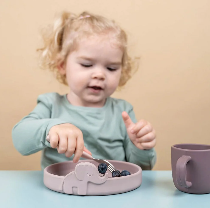 Los más pequeños disfrutarán con estos simpáticos animales a la hora de comer; podrán descubrir a Croco en el fondo de su taza cuando beban y Elphee estará asomado en el plato de comida.