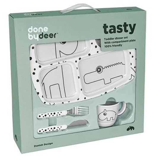 Set Vajilla 2 piezas + Set de Cubiertos Happy Dots Gris | Done by Deer